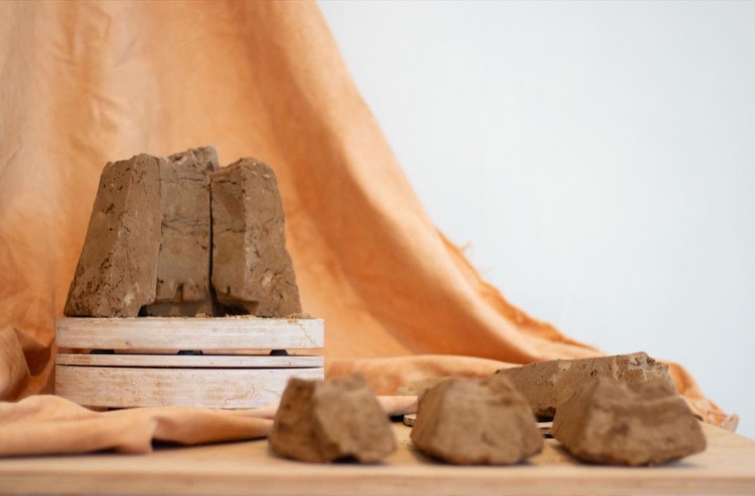 Selection of first prototypes (clay, red dirt from site and concrete), each ± 15 cm in height